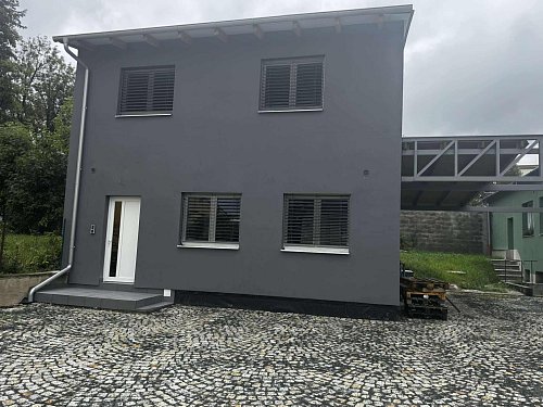 Dům je vybaven řadou nadstandardních prvků - podlahovým topením, které zajistí teplo a komfort během celého roku, a také vnějšími elektrickými žaluziemi, díky nimž budete mít dokonalou kontrolu nad světlem i soukromím.
